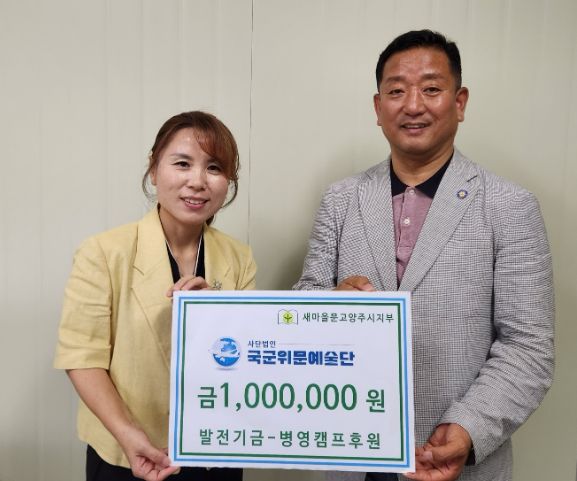 (정도일보) 사단법인 국군위문예술단은 지난 23일 새마을문고양주시지부를 직접 방문하여 양주시 문고 발전을 위한 기금 100만원을 흔쾌히 후원했다.