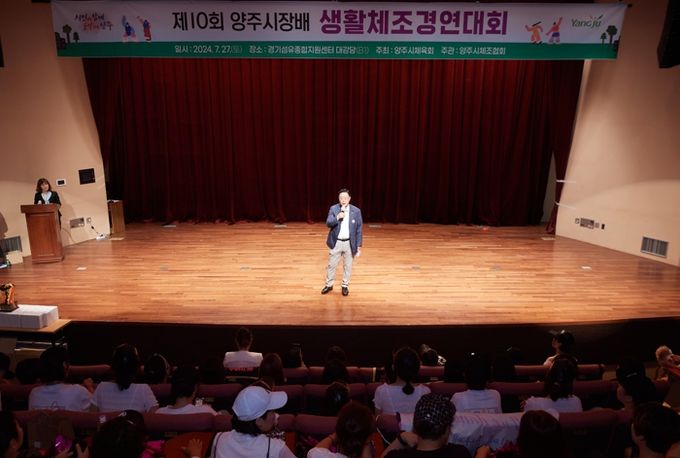(정도일보) 강수현 양주시장이 27일 오후 양주시체육회에서 주최하고 양주시체조협회가 주관한 ‘제10회 양주시장배 생활체조경연대회’의 방문해 참가 선수들을 격려하고 있는 모습이다.