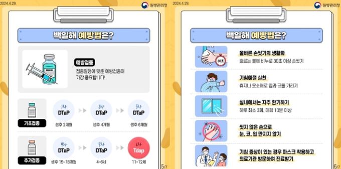 시 관계자는 “백일해 확산을 방지하기 위해서는 예방 수칙 준수의 적극적인 실천이 중요하다”며 “일상생활 중 쉽게 걸릴 수 있는 감염병인 만큼 여름철 방학 시기를 맞아 선생님들과 부모님들의 적극적인 관심과 지도에 협조를 구한다”고 말했다.