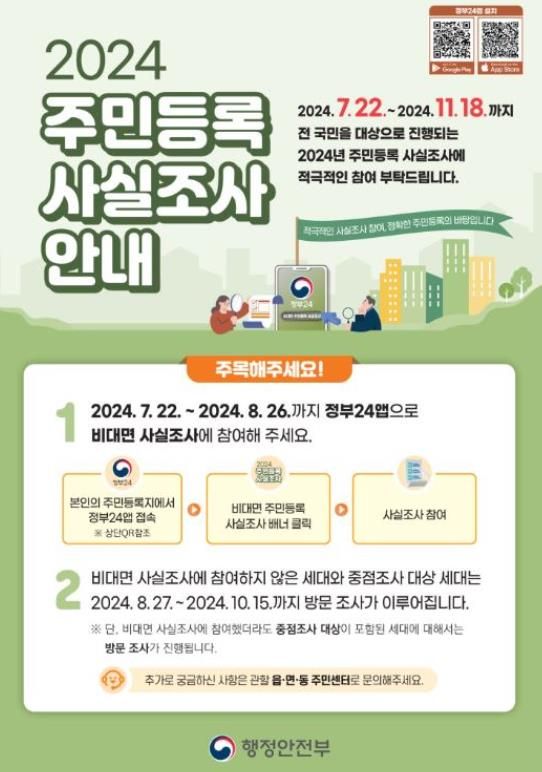 주민등록 사실조사는 주민등록주소지와 실거주지의 일치 여부 등을 확인하기 위해매년 수행하는 조사이다.
