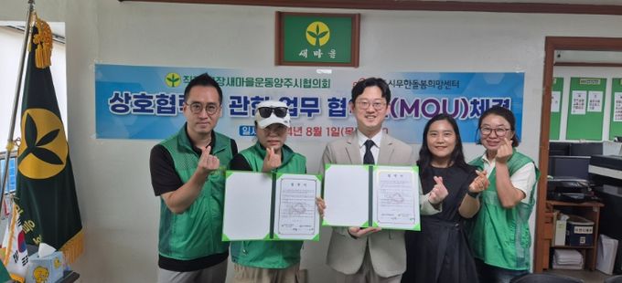 (정도일보) 직장공장새마을운동양주시협의회는 지난 1일 새마을회관 3층에서 양주시무한돌봄센터 나규필 센터장과 함께 지역사회 내 소외되고 어려운 이웃을 돕기 위한 업무협약을 체결했다.