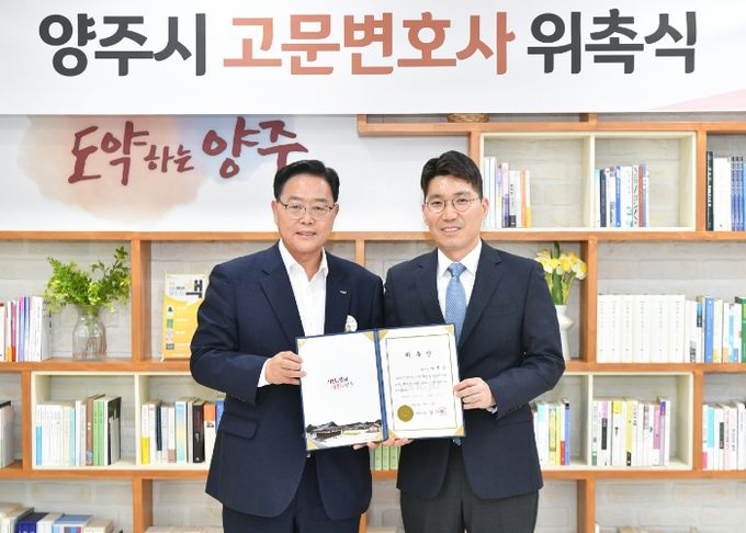강수현 양주시장은 위촉장을 수여하며 “양주시는 성장하는 수도권 동북부 거점도시로 옥정·회천 신도시와 역세권 개발 등으로 매년 인구가 증가하고 행정 수요가 다양해지고 있어 이에 능동적으로 대처하기 위해서는 법률전문가의 조력이 매우 필요한 상황”이라며 “풍부한 경험과 전문성을 바탕으로 시 정책에 대한 공정하고 객관적인 고견을 당부드린다”고 말했다.