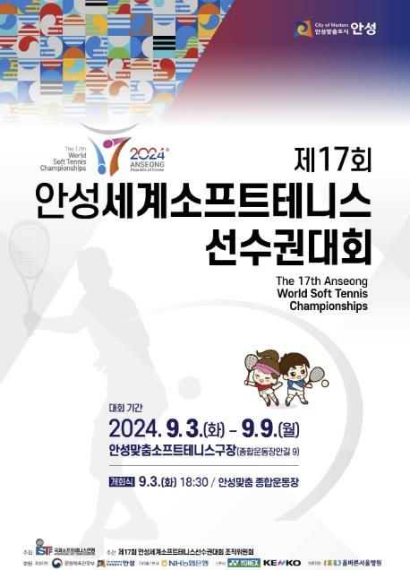 또한 각 종목별 경기는 9월 4일부터 9일까지 안성맞춤소프트테니스구장에서 열리며, 각종 체험·전시·홍보부스와 안성시민으로 구성된 프린지무대공연 등 다양한 볼거리가 함께 제공될 예정이다.