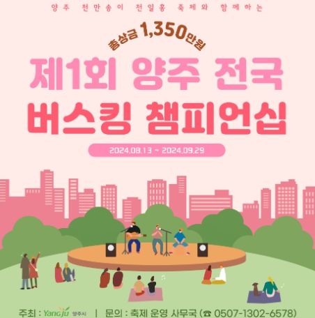 (정도일보) 양주시 오는 9월 열리는 천일홍 축제와 연계하여 개최될 ‘제1회 양주 전국 버스킹 챔피언십’에 참여할 예술가를 공개 모집한다고 13일 밝혔다.