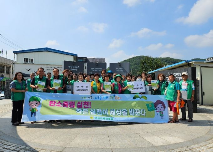 (정도일보) 양성면새마을지도자회(남,녀) 8월 14일 양성면 행정복지센터에서 8월 월례회의를 개최하고, 이어 오후에는 탄소 중립 실천 캠페인을 진행했다.