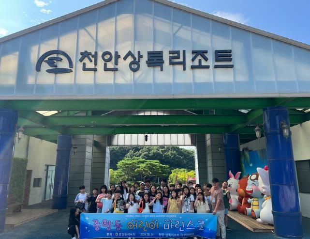 이번 마린스쿨은 천안 상록 아쿠아피아에서 진행됐으며 중앙동 어린이 34명과 인솔자 5명이 참가해 다양한 수상 놀이기구와 먹거리를 즐겼다.