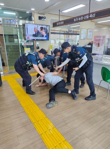 이번 모의훈련은 최근 증가하고 있는 악성 민원으로부터 직원을 보호하고 비상상황 시 경찰과의 유기적인 협력을 통해 대처 능력을 향상시키기 위해 마련했다.