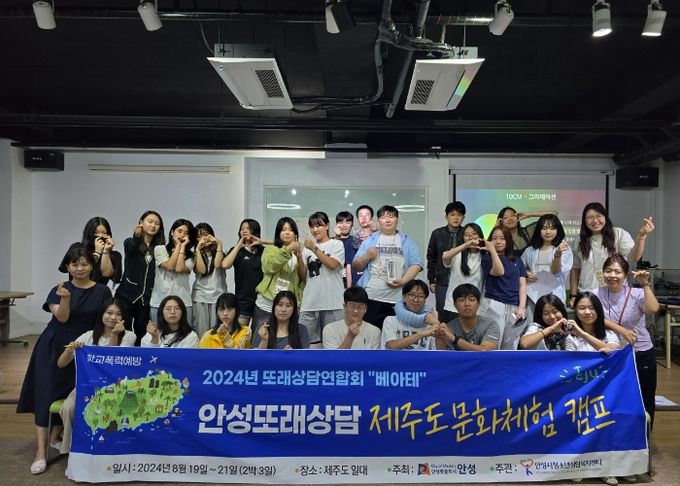 (정도일보) 안성시청소년상담복지센터는 지난 8월 19일부터 21일까지 제주도 일대에서 안성시 또래상담자 연합회원 16명을 대상으로 안성또래상담자 제주도문화체험 캠프를 진행했다.