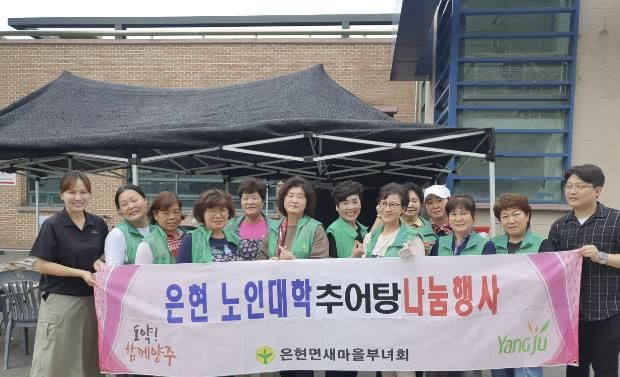 (정도일보) 양주시 은현면 새마을부녀회는 지난 26일 은현 노인대학 개학을 맞이해 은현복지회관에서 노인대학 재학생 60명에게 ‘사랑의 추어탕 나눔 행사’를 개최했다.