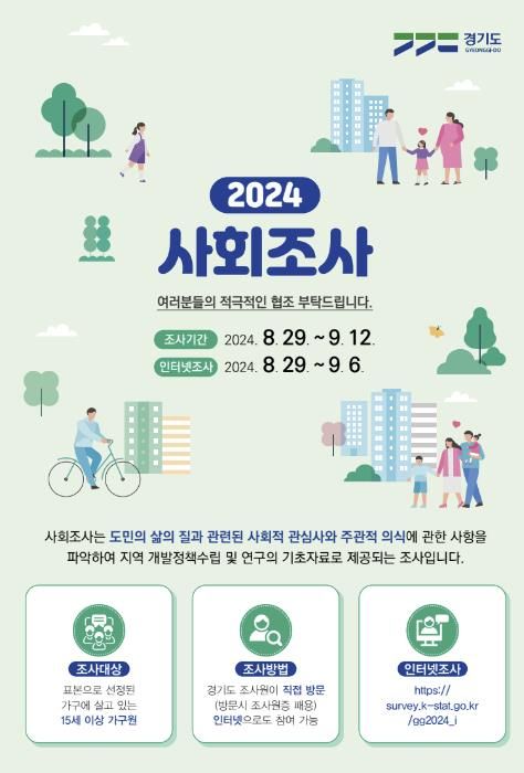 (정도일보) 안성시는 8월 29일부터 9월 12일까지 2024년 안성시 사회조사(제12회)를 실시한다.