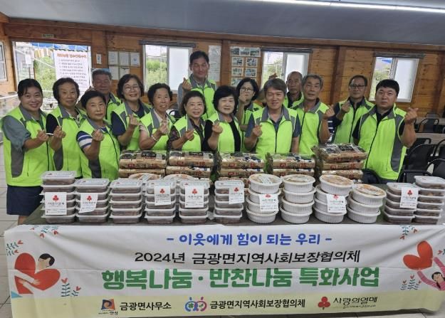 ‘행복나눔 반찬나눔’은 거동이 불편하거나 스스로 식사준비에 어려움을 겪고 계신독거 어르신, 취약계층 등을 돕기위해 금광면지역사회보장협의체에서 직접 가정을 방문해 밑반찬을 전달하면서 안부 확인 및 건강 상태를 확인하고 있다.