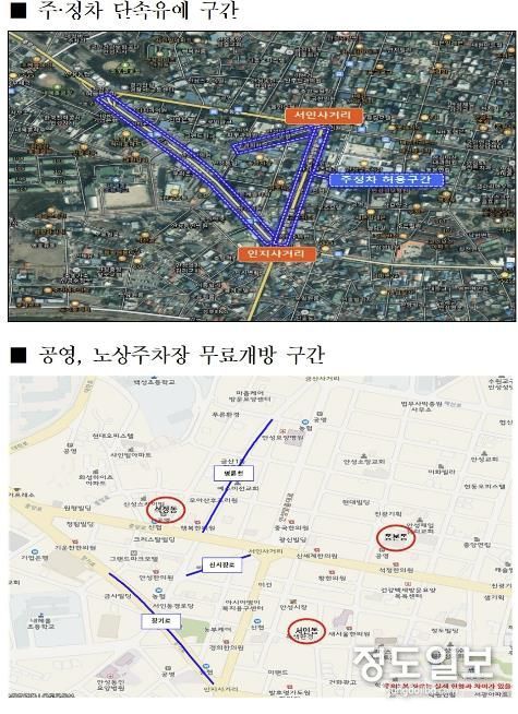 단속 유예 구간은 안성맞춤시장(서인사거리~인지사거리 구간 양측 300미터)과 중앙시장(서인사거리~안성농협 양측 100미터, 석정삼거리~인지사거리 양측 500미터) 주변 도로이며, 서인동, 동본동, 석정동의 건축식 공영 주차장과 전통시장 주변 노상 주차장을 무료 개방한다.