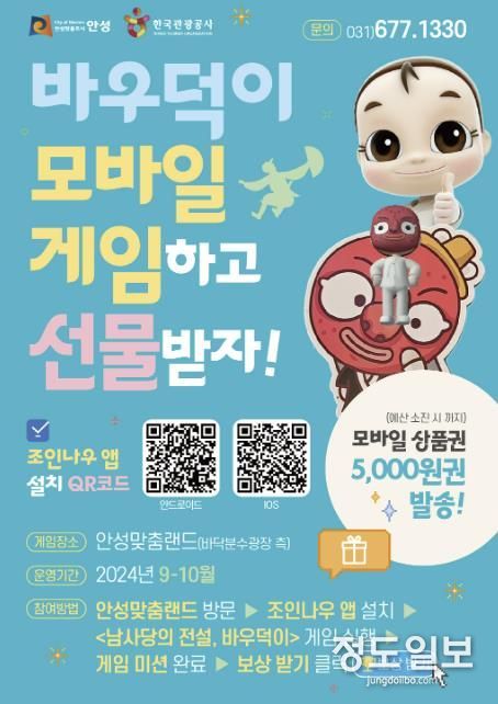 바우덕이 모바일 게임은 안성맞춤랜드에 방문하여 '조인나우'앱을 설치 후 참여가 가능하며 아홉 개의 미션 완료 후 간단한 설문조사까지 완료하면, 모바일 상품권(5천원권)을 제공하는 선착순 이벤트도 같이 실시한다.