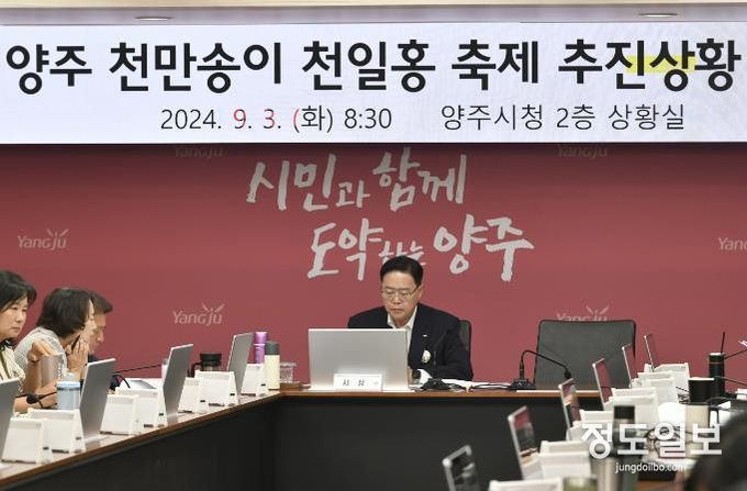 (정도일보) 양주시가 3일 오전 시청 상황실에서 강수현 양주시장의 주재로 실·국·소장 등 간부공무원이 참여한 가운데 ‘양주 천만송이 천일홍 축제 추진 상황 점검’ 간부회의를 개최했다고 밝혔다.