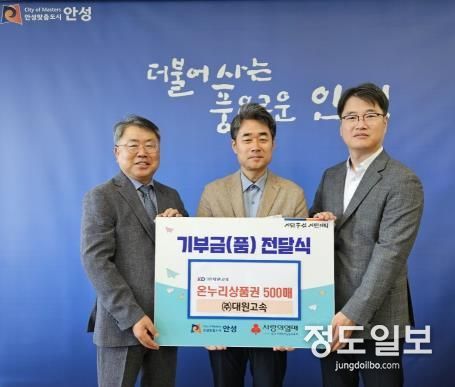 경기도를 대표하는 버스 운송업체인 ㈜대원고속은 경기도 내 시군에 매년 설·추석 명절에 온누리 상품권을 기부해오고 있다. 이번에도 안성시에 온누리 상품권 500매를 기부하며 지역경제활성화와 더불어 취약계층에 도움이 되길 바란다고 전했다.