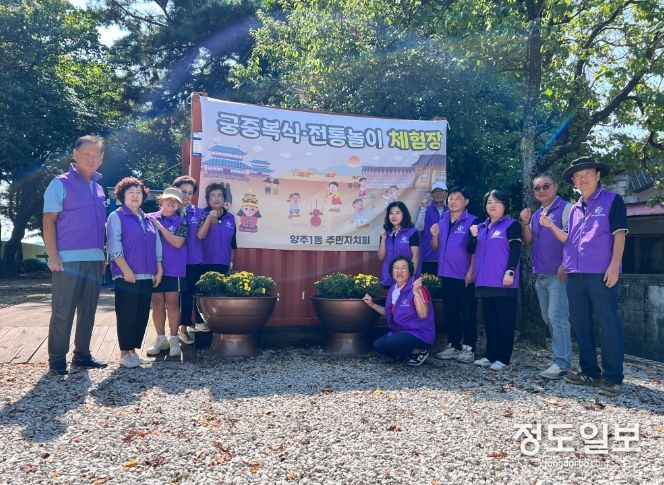 (정도일보) 양주시 양주1동 주민자치회가 오는 가을을 맞아 문화쉼터 체험장에 국화꽃을 심고 대청소를 시행했다고 5일 밝혔다.