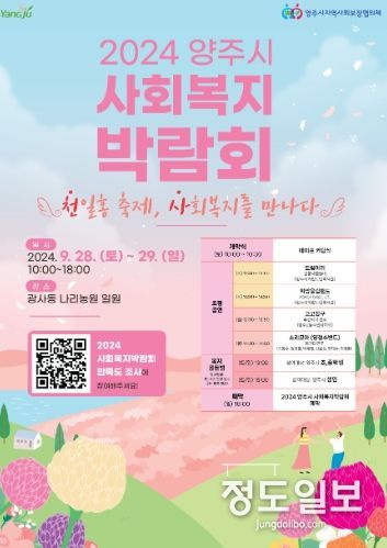 (정도일보) 양주시가 오는 28일과 29일 2일 동안 양주 나리농원 일대에서 제25회 사회복지의 날을 기념한 ‘2024년 양주시 사회복지박람회’를 개최한다고 밝혔다.