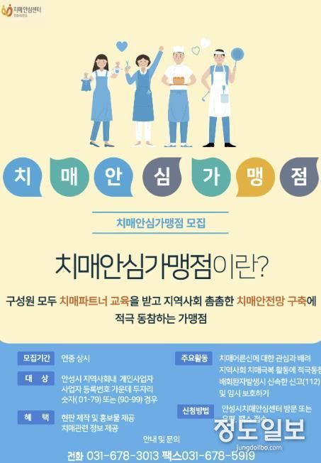 (정도일보) 안성시보건소 치매안심센터는 치매에 대한 정확한 정보 제공과 치매 친화적 사회조성에 적극 동참하는 치매안심가맹점을 모집한다고 밝혔다.