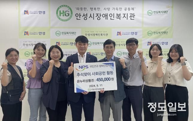 (정도일보) 사회복지법인 한길복지재단에서 수탁하고 있는 안성시장애인복지관은 지난 11일 국민연금공단 평택안성지사로부터 45만원 상당의 온누리 상품권을 후원받았다고 밝혔다.