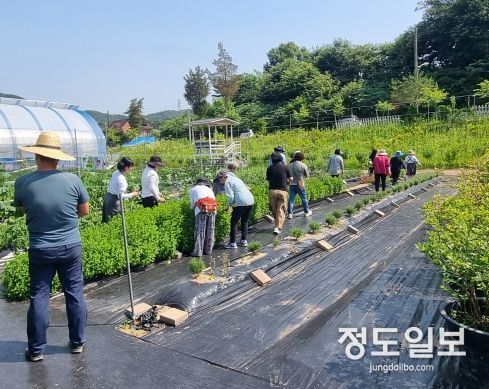 20일 시에 따르면 관내 치유농장과 장애인종합복지관, 정신건강복지센터 등 유관기관과 연계해 진행하는 ‘치유농업 유관기관 연계 활성화 사업’은 지난 4월부터 오는 11월까지 약 530명을 대상으로 △ 손수건 꽃물들이기 △ 치유식물 알아보기 △ 허브 수확, 차 만들기 △ 호박밭 맨발걷기와 호박요리 등 다양한 치유프로그램을 운영한다.