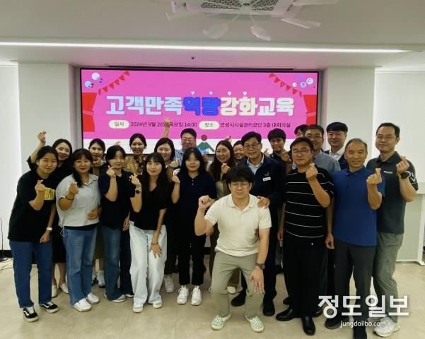 (정도일보) 안성시시설관리공단은 지난26일 14시에 공단3층 대회의실에서 서비스접점부서 관리자 및 실무진 20여명을 대상으로 한국기업교육개발원 CS외부전문가를 초청하여 고객만족 역량강화 교육을 실시했다.