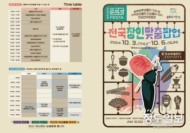 (정도일보) 오는 10월 3일, 안성시가 대한민국 문화도시 조성 예비사업의 앵커사업인 ‘전국유람@안성문화장 페스타’를 개최한다.
