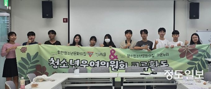 (정도일보) 양주시가 건립하고 한국YCMA전국연맹 (양주YMCA)가 위탁 운영하는 회천청소년문화의집 소속 청소년운영위원회 ‘지음’이 9월 28일 14시에 양주청소년문화의집 청소년운영위원회 ‘가온누리’와 교류활동을 진행했다. 두 기관의 첫 교류활동은 회천청소년문화의집에서 진행됐으며 방문한 위원들을 위해 청소년운영위원회 지음이 직접 기관 라운딩을 진행하기도 했다.