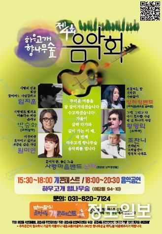 (정도일보) 파주시 운정4동은 10월 11일 오후 6시 하우고개 향나무숲(야당동 94-10)에서 제4회 작은 음악회를 개최한다.