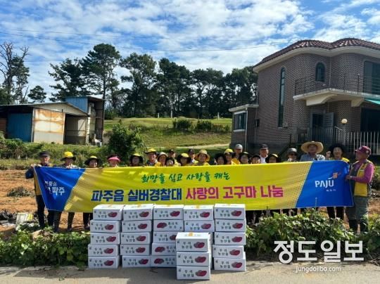 (정도일보) 파주읍 실버경찰대는 지난달 28일 ‘희망을 심고 사랑을 캐는 고구마 나눔’ 행사를 실시했다.