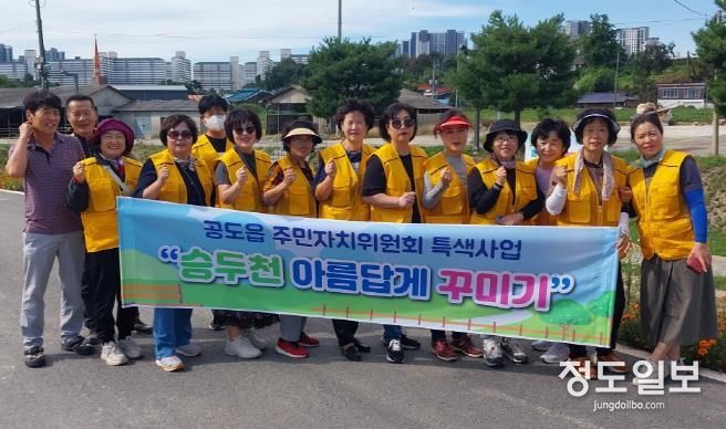 (정도일보) 안성시 공도읍 주민자치위원회는 지난 30일, ‘승두천 아름답게 꾸미기’ 사업을 위해 조성된 산책로 꽃길 가꾸기 활동을 실시했다.