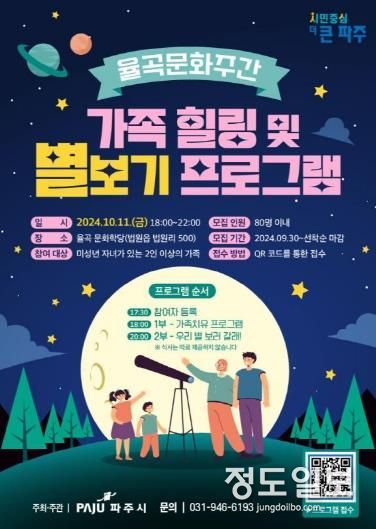 (정도일보) 파주시는 오는 11일 율곡문화학당에서 ‘가족 힐링 및 별보기 프로그램’을 실시한다.