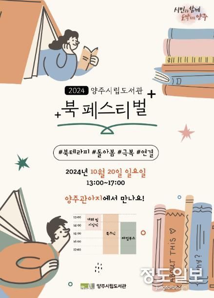 공공도서관, 사립작은도서관, 독서동아리, 지역서점 등이 참가하는 이번 축제는 ‘양주애서(愛書)’라는 주제 아래 시민들이 책을 매개로 함께 즐기는 축제가 될 수 있도록 다채로운 이벤트와 공연 및 체험부스 등이 운영될 예정이다.