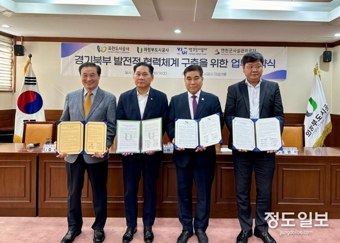(정도일보) 양주도시공사가 10월 8일 의정부도시공사, 포천도시공사, 연천군시설관리공단과 함께 경기북부 지역의 균형 발전과 인구감소 및 지방소멸 위기 대응을 위한 업무협약을 체결했다고 밝혔다.