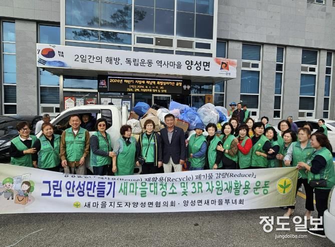 (정도일보) 양성면새마을지도자․부녀회는 지난 10월 10일 양성면 행정복지센터에서 “그린안성만들기 3R 재활용 운동”행사를 진행하였다.