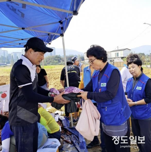 또한, 죽산면 자치위원회에는 고구마 캐기 행사에 사용할 팔토시를 전달하였다.