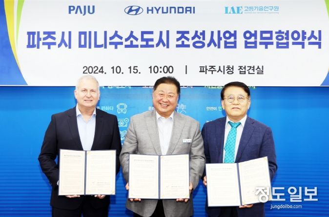 (정도일보) 파주시는 10월 15일 현대자동차(주), 고등기술연구원과 함께 '파주시 미니수소도시 조성사업' 업무 협약식을 가졌다.