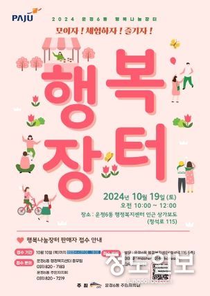 (정도일보) 지역 주민들이 함께 나눔과 소통을 실천할 수 있는 나눔장터가 오는 19일 파주시 운정6동 행정복지센터 인근 상가보도(청석로 115)에서 열린다.