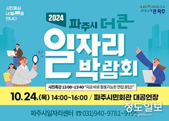 (정도일보) 오는 24일 파주시민회관 대공연장에서 ’2024년 파주시 더 큰 일자리박람회‘가 열린다.