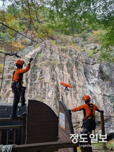 이번 훈련은 가을철을 맞아 등산객이 증가함에 따라, 추락, 실족, 고립 등의 사고를 예방하고 신속히 대응하기 위한 목적으로 마련됐으며, 총 19명의 119구조대원이 이번 훈련에 참여하며, 실전 상황을 방불케 하는 환경에서 구조기술을 강화할 예정이다.