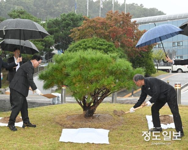 이날 식재된 ‘21주년 기념식수’는 상록침엽 교목인 소나무의 한 품종인 ‘반송’이며 이복선 前 양주시 마전2통장이 기증한 것으로 알려졌다.