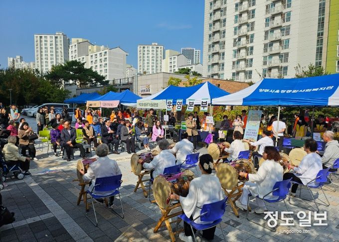 행사에 앞서 양주시옥정종합사회복지관에서 진행하는 장구교실의 회원들이 공연을 펼쳐, 행사의 참여한 지역 주민들에게 흥겨움을 선사하고 축제의 시작을 활기차게 열어줬다.