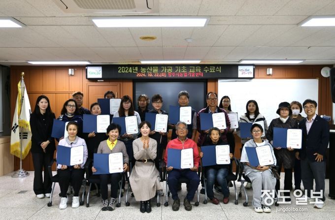 (정도일보) 양주시가 지난 22일 농업기술센터 소회의실에서 농산물 가공 기초 교육 수료식을 개최했다.