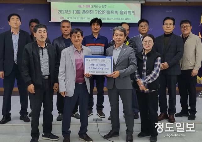 (정도일보) 양주시 은현면이 지난 22일 은현 기업인협의회에서 행정복지센터를 방문해 불우이웃을 위한 연탄 3,500장(환가액 280만 원 상당)을 기부했다고 밝혔다.