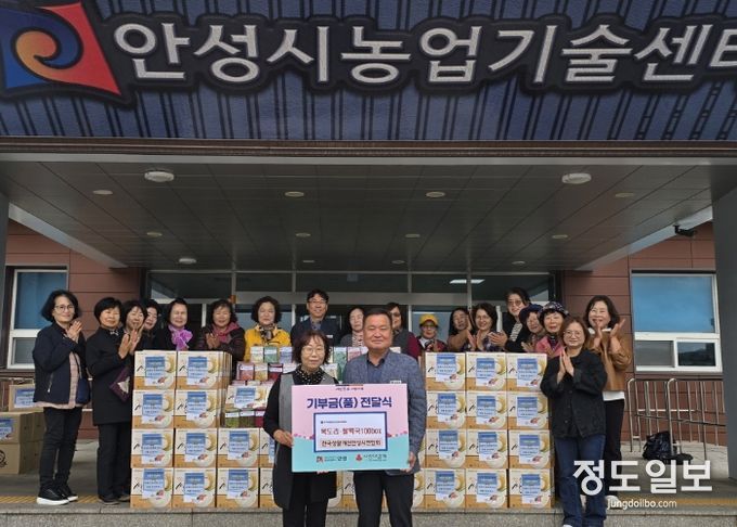 (정도일보) 안성시 생활개선안성시연합회는 10월 23일 손뜨개 목도리 200개와 쌀떡국 200박스를 노인복지회관과 서안성 푸드뱅크에 전달했다.