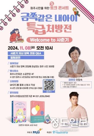 (정도일보) 파주시는 아동학대 예방의 날(11월 19일)을 맞아 11월 8일 오전 10시 파주시민회관 소공연장에서 ‘사춘기 자녀 양육지도’를 주제로 이야기 공연(토크콘서트)을 개최한다.