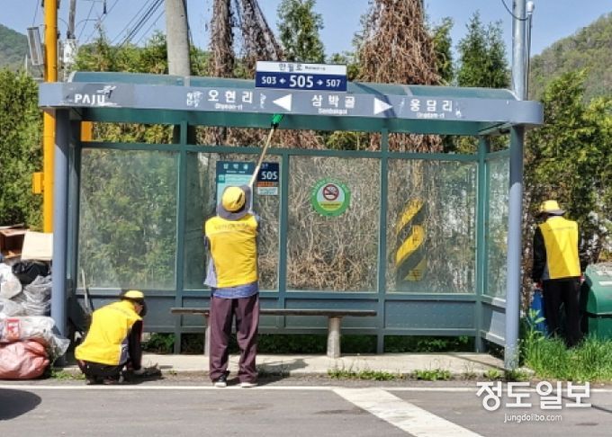(정도일보) 파주시 법원읍 실버경찰대는 지난 23일, 관내 버스승강장 및 공영주차장 등 다중이용시설에 대해 집중 청결활동을 실시했다.