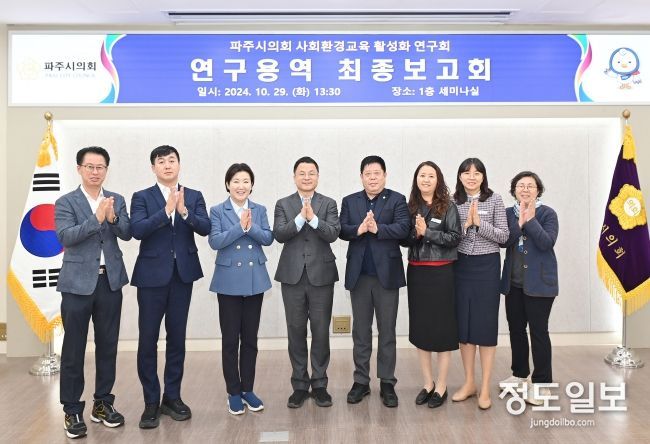 (정도일보) 파주시의회 의원연구단체인‘사회환경교육 활성화 연구회’는 지난 29일 '파주시 지속가능한 발전 사회환경교육 활성화 방안 연구용역'최종보고회를 개최했다.