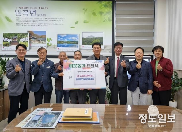 (정도일보) 원곡면 기업인협의회가 어르신들에게 힘이 되어줄 수 있는 기부를 결정했다. 지난 10월 28일 원곡면 기업인협의회가 200만원을 원곡면 노인회에 기부했다.