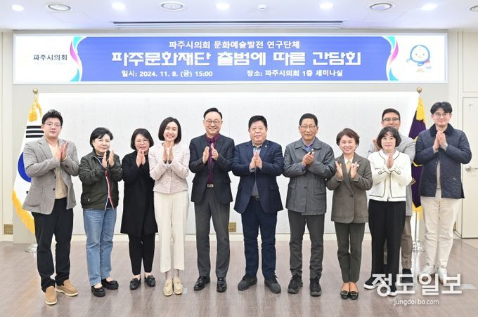 (정도일보) 파주시의회 의원연구단체인 ‘문화예술발전연구회’는 8일, 곧 출범을 앞둔 파주문화재단 관계자들과의 간담회를 가졌다.
