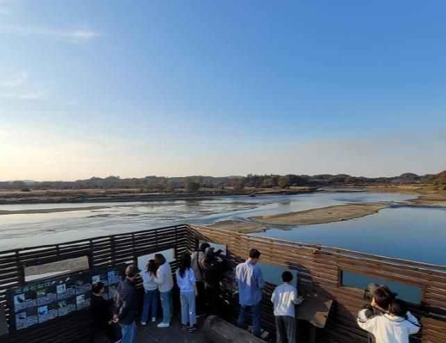 ‘걸어서 만나는 임진강’의 저자 이재석 작가와 함께 민통선 일대 탐방이 진행됐다. 탐방은 허준 선생 묘에서 펼치는 약초 탐사, 조류 관찰대에서 천연기념물 재두루미 등 탐조 활동, 멸종 위기종이 서식하는 자연의 보고인 초평도 등 디엠지(DMZ)의 아름다운 풍광을 만끽할 수 있는 덕진산성 답사 순으로 이어졌다.